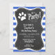 Kunglig blå och vita ränder; tassavtryck inbjudningar