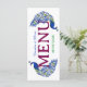 Kunglig blå påfågelbröllopsmeny, platt design meny