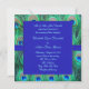 Elegant smaragdgrön, kunglig blå och blågrön påfågelsfjädrar fyrkantig bröllopsinbjudan. Anpassa med ditt val av typsnitt och typsnittsfärg.
