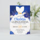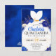 Omfamna din inre drottning och tillkännage din quinceanera i majestätisk stil med denna förtrollande Kunglig blå Quinceañera Blommig Vit Prinsessklänning Inbjudan! Denna fängslande design blandar det kungliga blå med ömtåliga vita blommor och en silhuett av en flödande vit prinsessklänning, vilket skapar en oförytterlig inbjudan till din magiska fest.