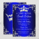 Kunglig blå Sweet 16 silverpärl Damask-krona Inbjudningar