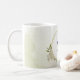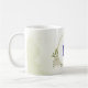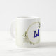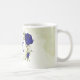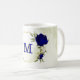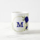 Vacker kaffemugg med kunglig blå och vita blommor och gröna blad