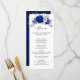 Kunglig blå vit silver metallisk blomsterbröllop meny