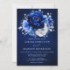 Elegant kunglig blå vit silver tema bröllops inbjudan med elegant bukett av kunglig blå, marinblå, silver, rent vita rosblommor knoppar och salvia gröna eukalyptusblad. Vänligen kontakta mig för hjälp med anpassning eller om du behöver någon annan produkt med denna design.