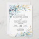 Dusty Blue och guld bröllopsinbjudan mall, Dusty Blue bröllopsinbjudningar, Blå och vit bröllopsinbjudan, Blå inbjudan Elegant Dusty Blue och guld tema bröllopsinbjudan med elegant bukett av kunglig blå, marinblå, silver, ren vit färg rosblommor knoppar och salvia gröna eukalyptusblad.