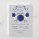 kunglig blå vita blommor blad grå bröllops inbjudan