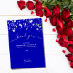 En kunglig blå bakgrund, dekorerad med vita stjärnor. Stor handskriven text med svängiga linjer och texten: Tack. Personifiera och lägg till ditt tackmeddelande och namn.