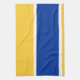 Denna handduk ska looken som var underbar i ett kök med en kunglig blått- och gult-guld dekor.