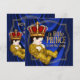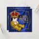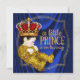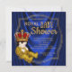 Pojkprins baby shower inbjudan med babyprins och röd och guldkrona på en vacker kunglig blå och guldsatinsbakgrund. Denna utsmyckade röda blå och guldkrona kunglig prins baby shower inbjudan är lätt att anpassa för ditt evenemang genom att lägga till dina evenemangsuppgifter, teckensnittsstil, teckenstorlek och färg samt formulering.