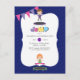 Kunglig blå och lila studsmatta födelsedagsfest inbjudan kan anpassas till dina evenemangspecifikationer.