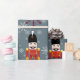 Använd denna festliga kungliga nötknäpparegåvasjal för alla dina slående in behov denna säsong. Designen presenterar ett nötknäpparemönster med kung, riddare- och sidanötknäppare, positiv snöflingor i rött, blått, guld och vit. Den kommer med en grå bakgrund.