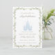 Bjud in gäster till en magisk kunglig fest med denna eleganta prinsessa slott födelsedagsinbjudan. Med en mjuk pastelljus illustration av ett slott och en delikat blomsterkant skapar denna design en charmerande sagostämning som är perfekt för prinsessa födelsedagsfester.