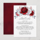 Elegant kunglig röd vit silver tema bröllopsdetaljkort med elegant bukett av kunglig rubinröd, karmosin, silver, rent vita rosblommor knoppar och eukalyptusblad. Vänligen kontakta mig för hjälp med anpassning eller om du behöver någon annan produkt med denna design.