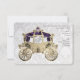 Guld RSVP typografi och gyllene vagn med sammetsliknande baldakin kantad med gyllene dekorativa accenter och vit damastbakgrund.
