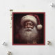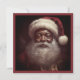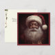 Denna bild är ett vintage julkort med en leende svart tomte. Kortet visar tomten iförd en röd kappa och hatt. Färgerna på bilden är främst röda och vita med inslag av mörkbrunt. Den övergripande tematiken i bilden är festlig och traditionell och avbildar den ikoniska figuren tomten under högtiden.
