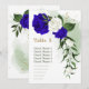 kunglig blå och vita blommor med några gröna blad och guldglitter bordskort