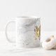 Kyssen från det kungliga paret Harry och Meghan muggar med falskt guld Royal Crown, också accentuerad med rosa pärlband över marmor och modern DIY-färg, korallränder och fläckar av falskt guld bakgrund. Copyright © 2018 PixDezines.com™ och PixDezines™ på zazzle.com