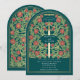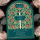 Sätt tonen för din medeltida fantasibröllop med en djärv båginbjudan design - ett storslaget svärd omgivet av blommor och guldfärgade accenter mot en teal bakgrund. Perfekt för par som drömmer om en episk, romantisk firande. Gör din kärlekshistoria legendarisk från första ögonblicket! OBS: det guld som visas i denna design är INTE äkta folie.