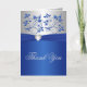 Kungsblå Blommig och Silver Hjärtat Tackkort