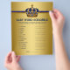 Prins-babyshowerlekar med babygåtor på ena sidan och rimtest på den andra. Denna kungligt blå och gyllene prinskrönta babyshoweraffisch är rolig och prisvärd! Du kan ändra frågorna och orden. Dela ut dem till dina gäster och tala om för dem att inte titta, starta sedan klockan. När tiden är slut läser du upp svaren och den som har flest rätt vinner ett pris. Du kan lägga till de ord och rim du vill.