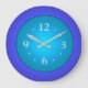 En förtjusande klocka som skulle lysa upp hemmet för vem som helst! Funktionerna är kungsblå med grön akvafärgad mittdel, elfenbensvita siffror och silverfärgade visare. Anpassa för att ändra färgen på siffrorna och klockans visare om du önskar. Finns i runda och fyrkantiga former. Kolla in Orientcourts stora utbud av klockdesign i alla färger.