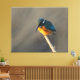 En kungsfiskare satt och väntade ovanför en damm och visade sig vackert på en utsträckt arbetsyta.