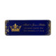 Kungslig blå och guld glitter krona bröllop födels returadress etikett
