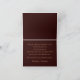 Elegant bröllopstackkort med veck i djup burgunderfärg. framsidan har "tack" i en klassisk teckensnitt, medan insidan innehåller ett formellt tackmeddelande i Cinzal-typografi, perfekt matchande den kungliga inbjudningsstilen. baksidan är enfärgad i djup burgunderfärg för en tidlös, sofistikerad look.
