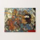 Kuniyoshi Samurai-pussel. Ukiyo-e-träblock från Edo Period Japan. Utagawa Kuniyoshi designad några av Edos mest livfulla och imponerande samuraimålningar. Hans bild av Shimamura Danjo Takanori visar samurai i fullt armé som vidrör hans naginata medan han rider vågarna om havet på två blå krabors rygg. Samurai har varit slåare av många pilar, men strider med vinkarare och krabba som stigning i bakgrunden. En underbarare gåva till fläkt av Utagawa Kuniyoshi, samurai-målningar och japansk konst.