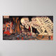 Kuniyoshi Skeleton poster. Ukiyo-e-träsket från 1845 Edo Period Japan. Utagawa Kuniyoshi var en av ukiyo-e stil:s sista underbara befälhavare, och Mitsukini Defying The Skeleton är ett av hans mest erkända och berömda verk. I träsket finns hjälten Kuniyoshi teckning som ett slagord mot ett gigantiskt skelett som tittar illa på honom. En vacker och skrämmande gåva till fläkt av Utagawa Kuniyoshi, Skeleton-målningar och japansk konst.