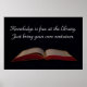 En poster med ett foto av ett bok med ett talesätt om hur kunskapen är fri vid bibliotek.