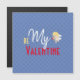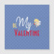 Var min Valentine har fått blåa hjärtblåhjärtan som sprinklats över en blå säng och avslutat med en dekorativ text åtföljd av en ung cupid.