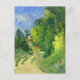 Ett finkonstkort med målningen av den franske konstnären Paul Cézanne (1839–1906), med titeln Kurva på vägen genom skogen (cirka 1873–1875), visar ett naturskönt landskap med en slingrande jordväg omgiven av frodiga gröna träd.