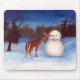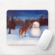 Från en original- Brenda Thour akrylmålning av en hjort som är nyfiken om det nose den smaskiga lukta moroten för snowmans.