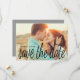 Trendig, handskrivet utseende, typografi i fet, svart kursiv stil, lägg till stil på det här platta fotokortet med förlovningens bild, namn och "Spara datum"-information på framsidan. Mjuk neutralt grått färg ramar på baksidan där du kan anpassa texten med alla viktiga detaljer: bröllop datum, webbplats eller ett personligt meddelande.
