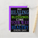 "FÅR VÄRMAS OCH BLESSINGAR KOM DIN SJUKDOM OCH BEHÅLLA VARJE DAG" Citatet skrivs i stora färgstarka brev på svart bakgrund.
