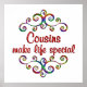 Ett söt sätt att låta den älskade kusin veta hur du känner. Njut av den här färgfulla designen med blommor och ord - Kusins gör livet speciellt.