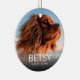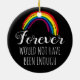 Till minne av din älskade husdjursprydnad med foto av din hund eller katt, deras namn och datum. På baksidan finns en svart bakgrund som kan ändras till valfri färg, en färgrik regnbåge och uttrycket "för evigt hade inte varit nog".