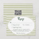 Detta fantasifulla kustbröllops-svarskort med en QR-kod har en spetsig kant och stilren salvia grön randig bakgrund. Perfekt för ett strand- eller kaliforniskt destinationbröllop. Skapad av Simply Farmhouse Press.