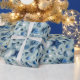 En härlig indigoblått färgade version av ett kust- foto av sjöstjärnan, och snäckskal på stranden av Marthas vingård, uddtorsk gör älskvärt slående in papper. Fotografera taget av konstnären Tim Coffey. Underbar till sjalgåvor för strandälskare.