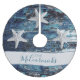 Om du vill ha en kuststrandsport, ta en titt på den här personligen träd kjol. Det är designad med en marin och medelblå rustik träbakgrund och tre stora stjärnfiskar. Den skapades från ett personligt fotografi av en riktig Florida-stjärnfisk. Anpassad med familjens efternamn i det moderna trendigets vita calligrafhandskrift. Klicka på Anpassa mall och ange namn.