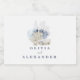 Etikett för kustblått årstidsblått monogram vin i bröllop.