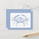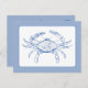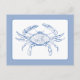 Det här vykortet har en klassisk kustkrabba i blå och vit nyans.