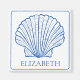 Den här vackra kvadratiska magneten har en kust klassisk blå snäcka på vitt och kan vara personlig med namn eller speciell text.