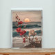 Kustbliss: Röda och vita blommor vid solnedgång Fototryck