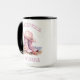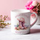 Kustcowgirlkaffemugg. © Radenbrea Studios på Zazzle. En kaffemugg med ett par rosa cowgirlstövlar och hatt på stranden, och orden Kustcowgirl på den. En trendig kaffemugg som skulle vara en fantastisk present.