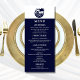 Ta med en liten bit av maruterelegans till din speciella dag med det här menykortet för bröllop vid personligens kust, med en chic grafik av en marinblå träd, sol som stigning över havet och fredliga fåglar under flygning - alla vackert inramade i en marinkrets. Mot en snyggt som är skarp, vit och marin bakgrund fångar denna handflatan träd bröllop havsskönhet och den avslappnade charmen från ett tropiskt firande. Med elegant typografi och kalligrafi-skript typsnitt är den här snyggtens bröllopsmeny perfekt för sommarceremonier och kustmottagningar. Ett tidslöst tillägg till menysamlingen i bröllop.