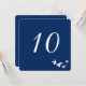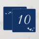 Fullt anpassningsbar enkel, elegant design för bordskort. Fågelflocken är vit och har en genomskinlig bakgrund så att du kan ändra pappersfärgen för att matcha ditt evenemangstema. Alla textområden kan anpassas. Den blå standardbakgrunden är perfekt för kustbröllop eller judiska bröllop.