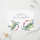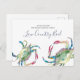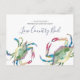 Den här familjen med kustteman sparar datumet för vykort med ord "låg land-kokpunkt" som anges i en handskriven skripttypografi med snyggt med händelseinformation i ett klassiskt grått-serif-teckensnitt på en skarp vit bakgrund. Min ursprungliga färgkrabbmålning i skuggor av , blå och gröntar är på framsidan och baksidan. En kustnära chic som ännu inte har något val för en avslappnad krabb, en fjärde juli i party eller en familjeåterförening. Om du vill se passande inbjudningar och utformningar från Victoria Grigaliunas besöker du DotellABelle på Zazzle.