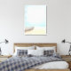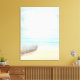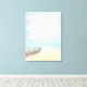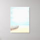 Kanvastryck med en vacker rustik bild. Diskret färg av ljusblått, sandbrunt och milt vitt. En strandscen med en båt på stranden med ett fiskenät hängande på sidan. En elegant ska se ut.